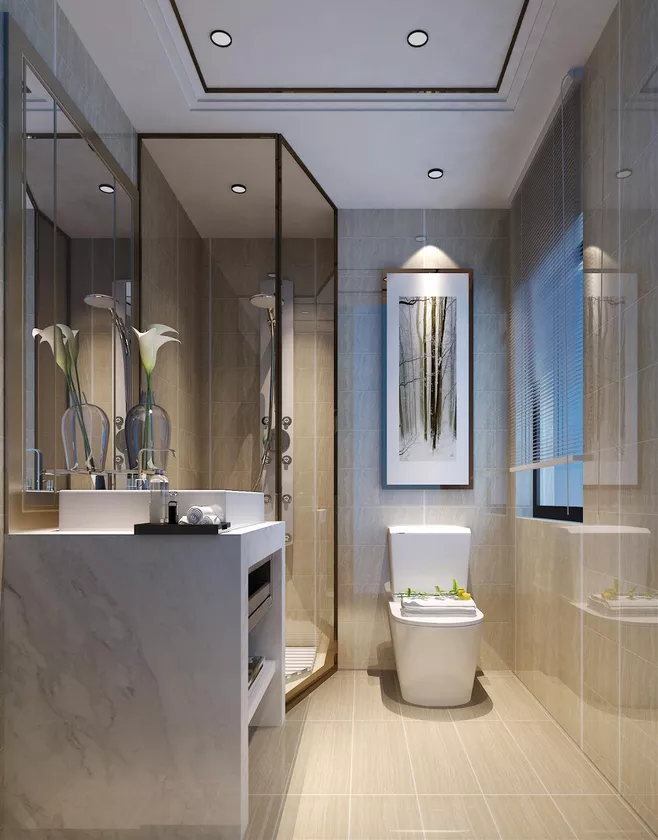 1、衛(wèi)生間一定要進行干濕分離,空間小做淋浴房麻煩的話,用浴簾簡單分隔。